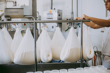 „Je to sýr kavkazského typu. Jeho výroba je výjimečná hlavně tím, že se sráží a vzniká při 95 stupních. To je mnohem víc, než běžné sýry. Při tak vysoké teplotě zůstane v sýru ricotta, což mu dodává jedinečnou konzistenci a chuť,“ vysvětluje Šárka. Doubravák je vskutku univerzální sýr – hodí se na gril, na pánev, do salátu, do trouby, nasladko i naslano.