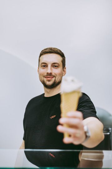 Dnes stojí za všemi recepturami, které dělají značku Ještě jednu tak specifickou. „Nápadů je hodně, ale kumšt je převést je do výroby,“ říká. V pultu mají vždy jen šest příchutí. „Zakládáme si na čerstvosti, takže výběr musíme držet úzký. Vyřádit se můžeme u balené zmrzliny nebo naší novinky zmrzlinových dezertů.“