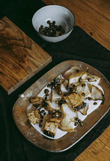 PEČENÝ CELER S KAPAROVO-FAZOLOVOU OMÁČKOU