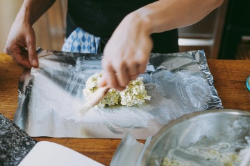 ✺Kraje si necháme volné, abychom mohli alobal zavinout do tvaru válečku a pevně utáhnout.