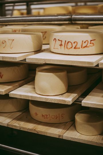 Sýry zrají na smrkových prknech. Dřevo tu není dekorace, ale tradice. Pomáhá udržet ideální vlhkost.Technologické vedení i kontrola kvality probíhají ručně – po čtyřech týdnech se každý sýr rozkrojí, posoudí se konzistence, barva, úroveň zrání. Na základě toho se sýry třídí – některé dozrávají půl roku, jiné se zpracují jako měsíční polotvrdé.